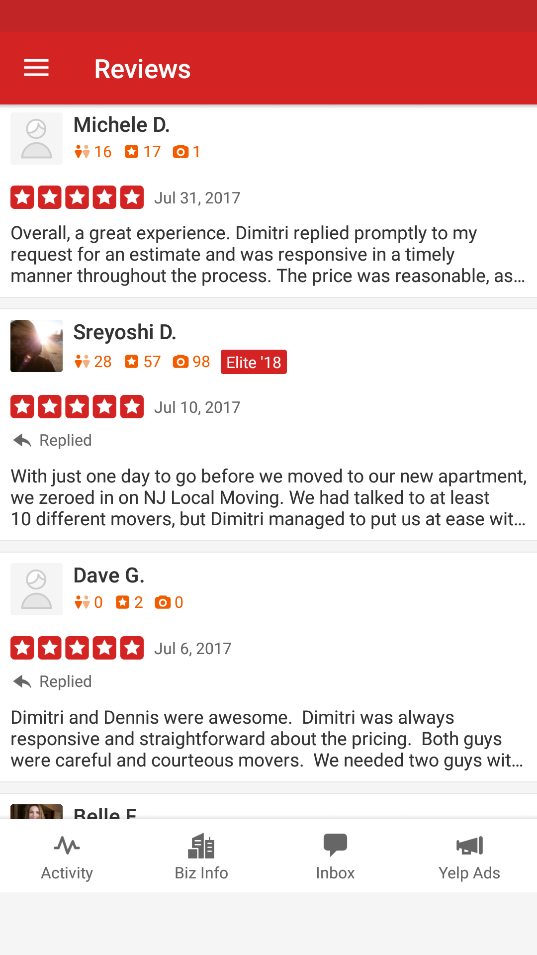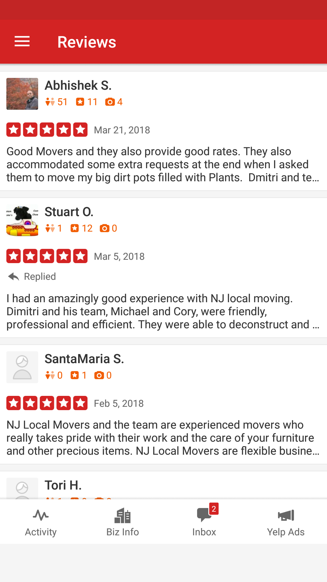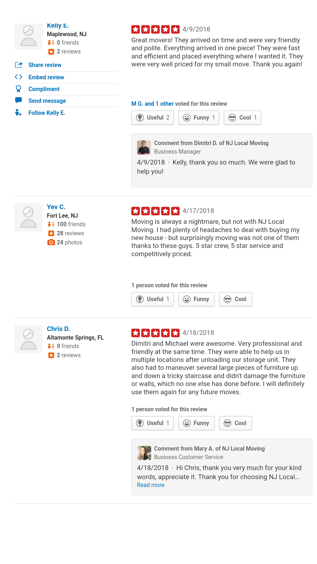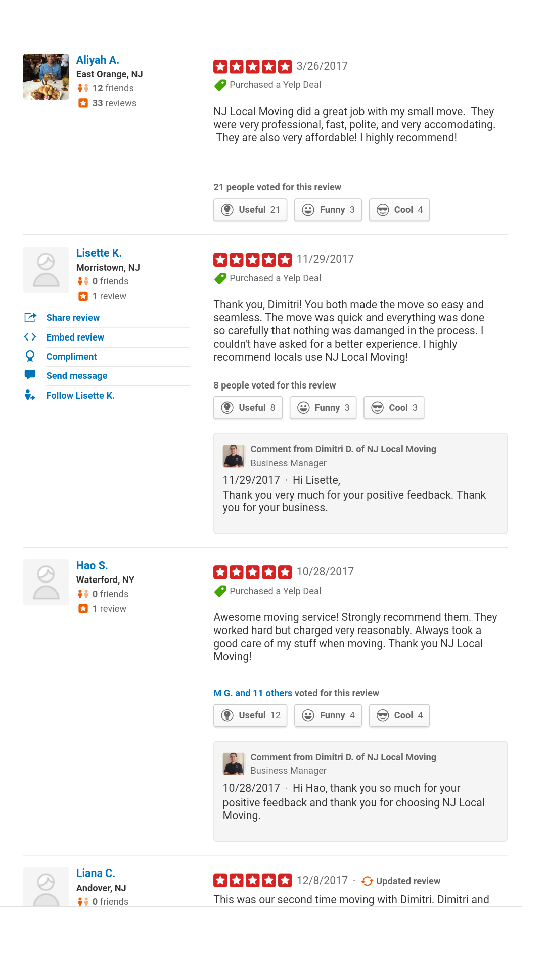 A lot of companies claim to be the best in their field, but few can back that claim up with consistent reviews. No matter where you look, NJ Local Moving has built a reputation for consistently providing 5-star or "A" rated service to our clients. Check out our Moving Reviews and Experiences to see for yourself that we are expert movers!